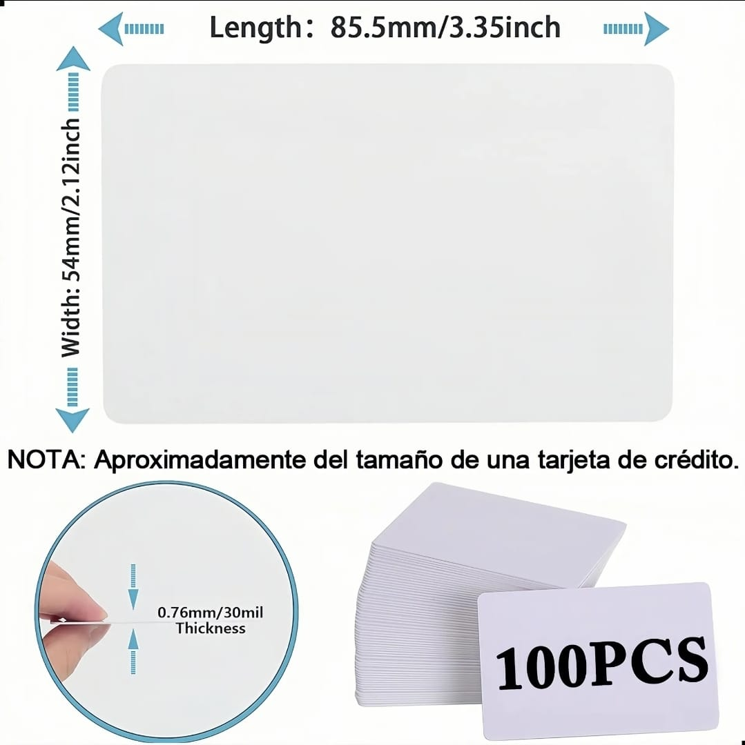 TARJETAS DE PLASTICO PVC CR80. 100 Piezas.